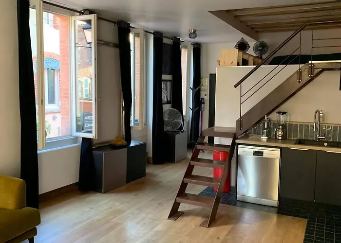 Bel appartement atypique quartier St Cyprien Toulouse de 45 m² se situe à proximité d'attractions touristiques comme la Garonne, qui est à moins de 5 minutes à pied. Le Wi-Fi est disponible pour les besoins professionnels ou de loisirs des clients.